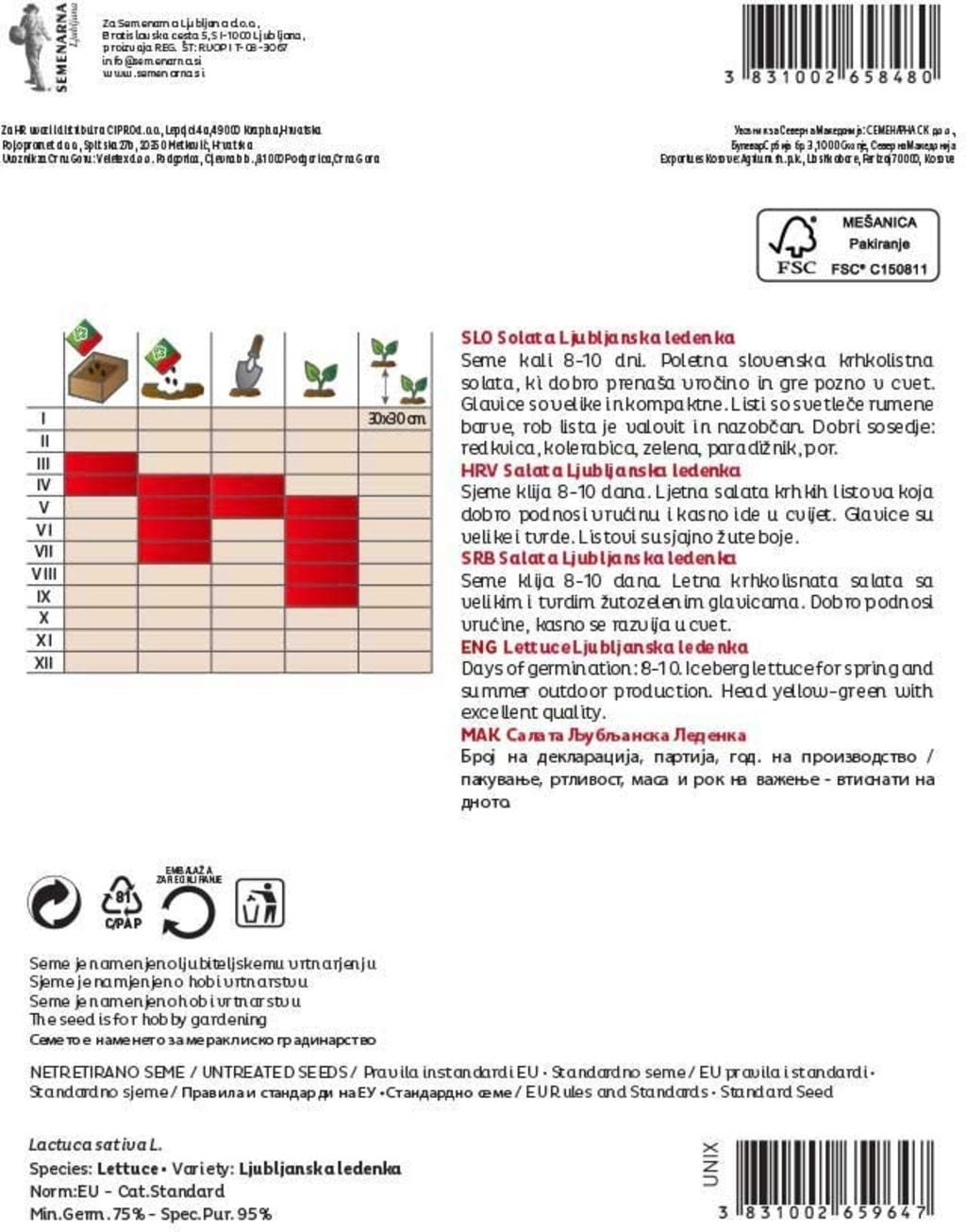 | Proizvajalec: | Semenarna Ljubljana d.o.o., Bratislavska Cesta 5, 1000, Ljubljana, Slovenija, info@semenarna.si, www.semenarna.si |