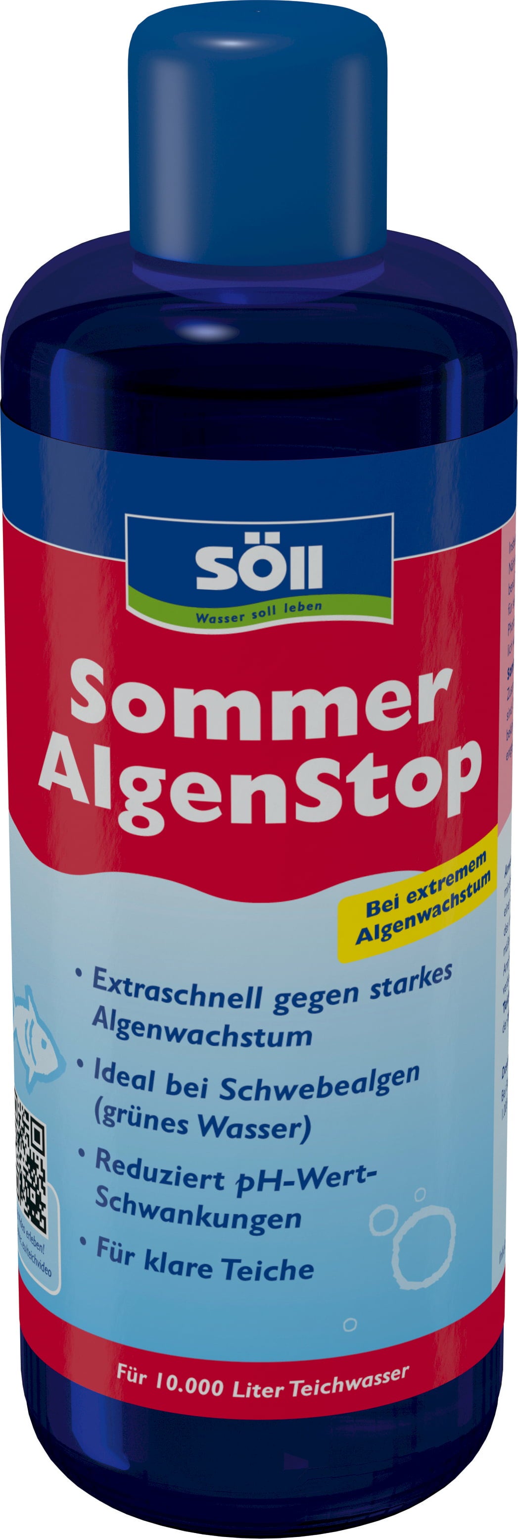 SommerAlgenStop je zaradi posebne sestave aktivnih sestavin prilagojen potrebam vodnih teles v poletnih mesecih. Hitro delujoče sredstvo ovira normalno presnovo alg in blokira njihovo fotosintezo. To stabilizira pH vrednost vašega ribnika in voda je bistra. V ribniškem biotopu se vzpostavi biološko ravnovesje.