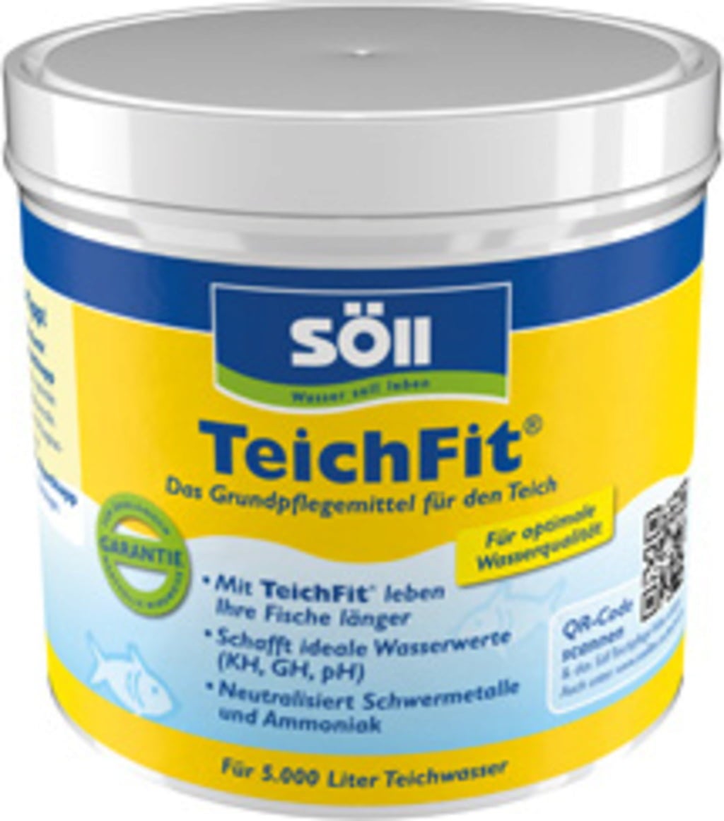 TeichFit® Söll je osnovno sredstvo za nego vrtnih ribnikov z živalmi. Izboljšuje ali ohranja kakovost vode – na veselje celotne flore in favne habitata! Zahvaljujoč naravnim sestavinam, ki jih naravno vsebuje tudi voda, TeichFit ne napada črpalk ali cevi in ostaja popolnoma neškodljiv za ljudi in živali. V zameno se ekološko ravnovesje stabilizira in okrepi v hipu, življenjska doba rib in drugih pa se podaljša. Pregled ugodnosti: