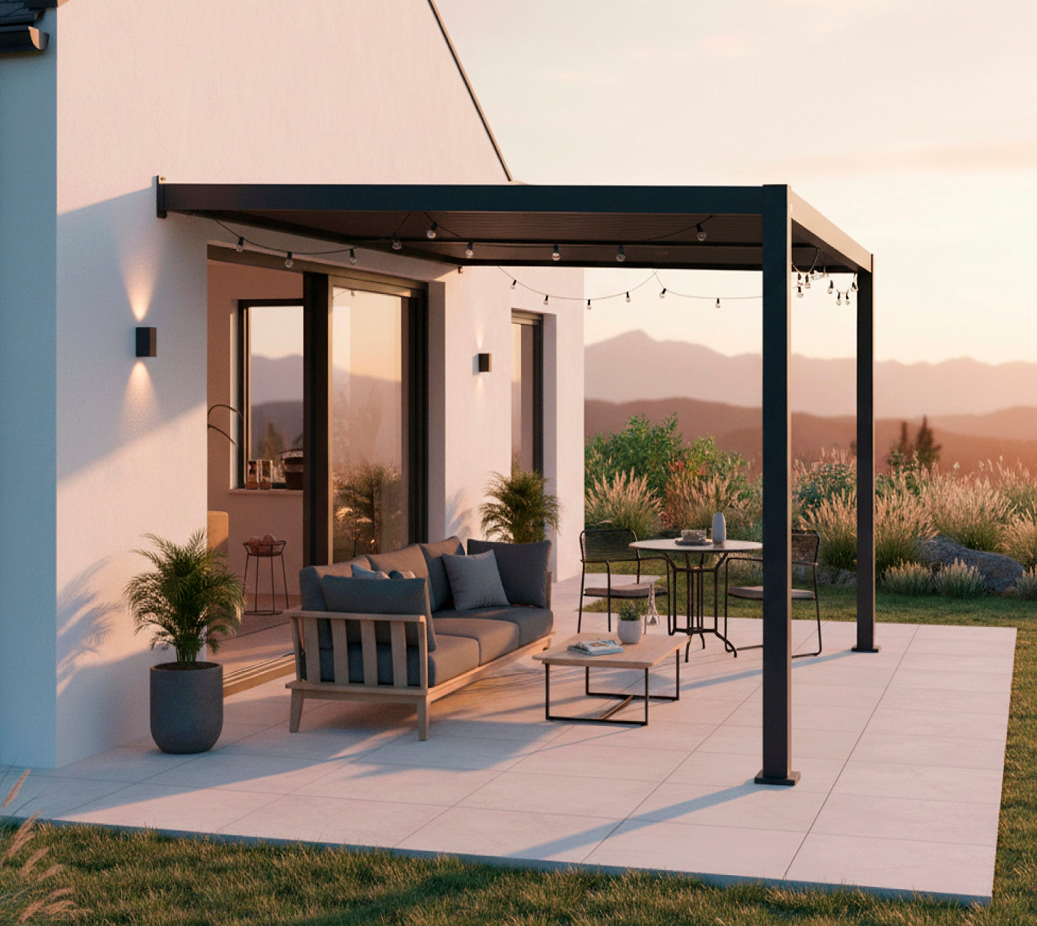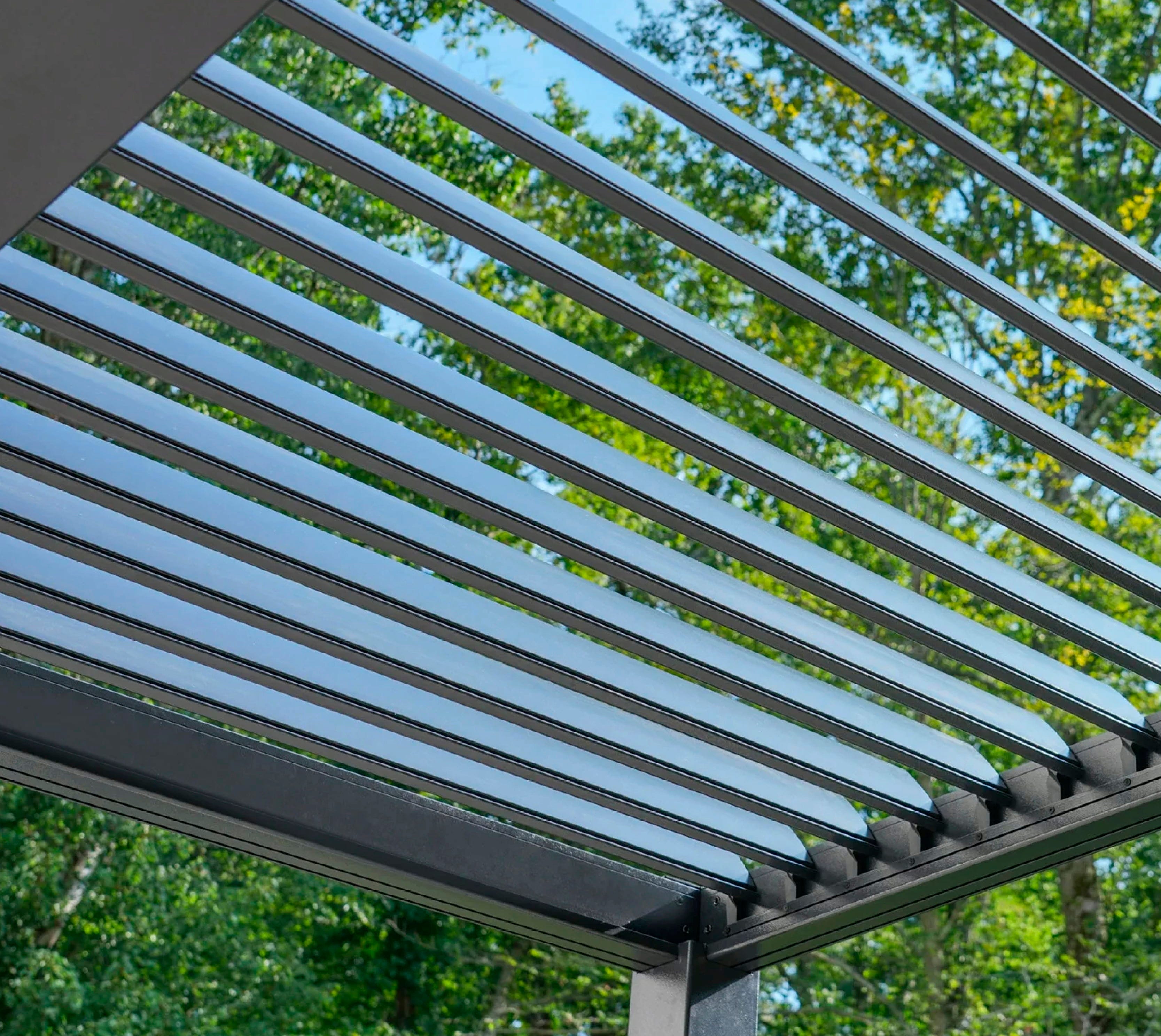 Pergola Hana 1013 znamke Sojag združuje sodobno obliko in maksimalno prilagodljivost. Dva nastavljiva dela lamel omogočata individualno uravnavanje sence, robustna aluminijasta konstrukcija pa zagotavlja dolgotrajno zaščito. Idealna kot nadstrešek za teraso ali dodatni paviljon – elegantna, funkcionalna in popolna za sproščanje na prostem!