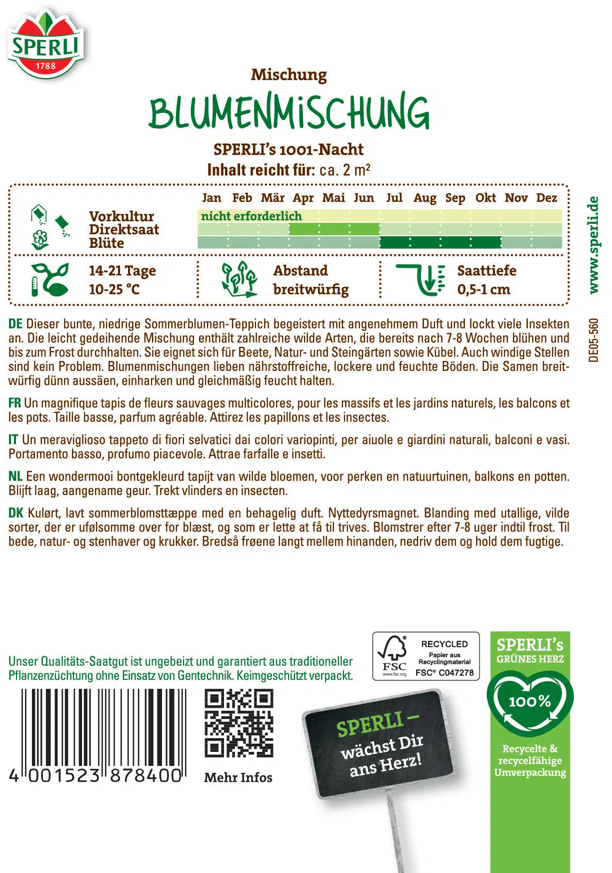 Ta poletna mešanica cvetja spremeni gredice, naravne površine in celo balkonska korita v pisano preprogo cvetja. Rastline zrastejo do 30–40 cm visoko, imajo rahel vonj ter so magnet za čebele, čmrlje in metulje. Mešanica je enostavna za nego, hitro raste in zagotavlja živahne barvne odtenke skozi vse poletje.