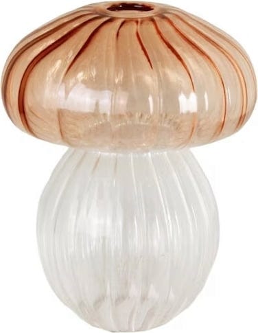 Simpatična vaza v nežni breskovo-rožnati barvi navdušuje s svojo igrivo obliko gobe in združuje eleganten dizajn s praktično funkcijo. Idealna je kot majhen barvni odtenek na okenski polici, na polici ali na mizi - harmonično jo je mogoče kombinirati z različnimi slogi opreme.