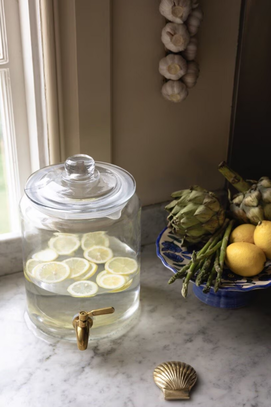 Steklena posoda z medeninasto pipo je popolna za pijačo na zabavah, na vrtu ali ob prijetnih trenutkih doma. Tesno zaprt pokrov ohranja vsebino svežo, medtem ko velika odprtina olajša polnjenje in točenje. Praktično, stilsko in prava paša za oči na vsaki mizi.
