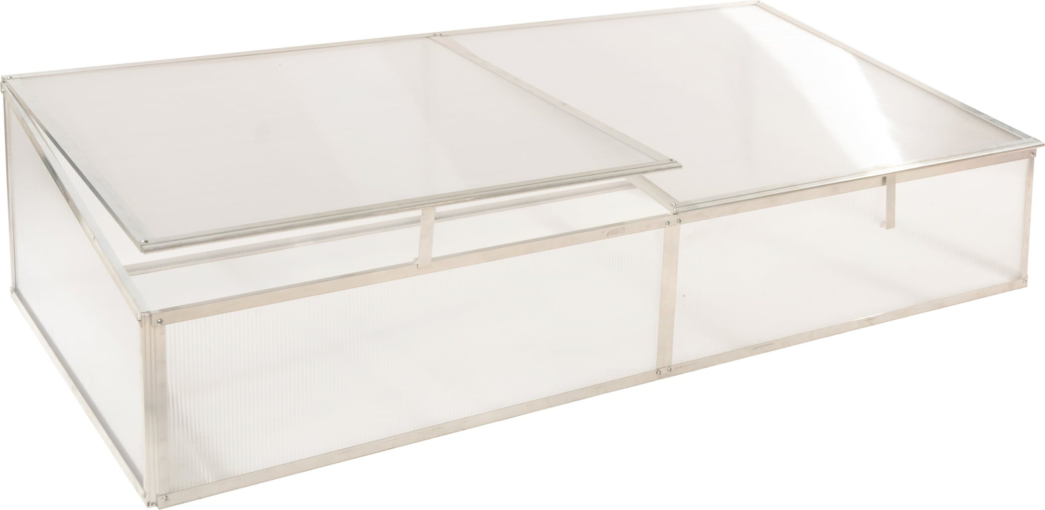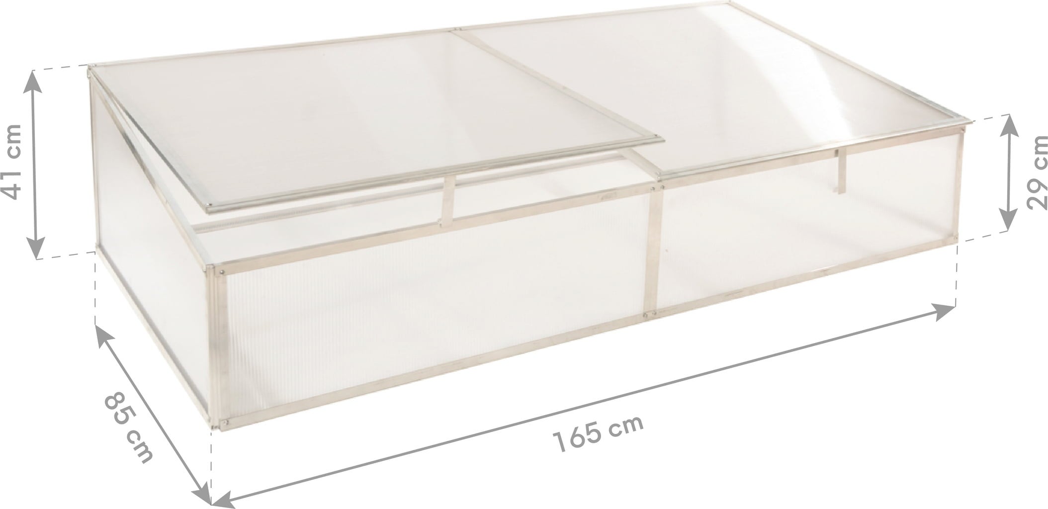 Konstrukcija iz trpežnega aluminijastega okvirja in 4 mm debelih polikarbonatnih plošč zagotavlja optimalno rastno okolje, v katerem bodo vaše rastline uspevale že od samega začetka. Pokrov se lahko odpira in zapira glede na individualne potrebe vaših rastlin, tako da lahko ustvarite popolno klimo za vsako rastlino.