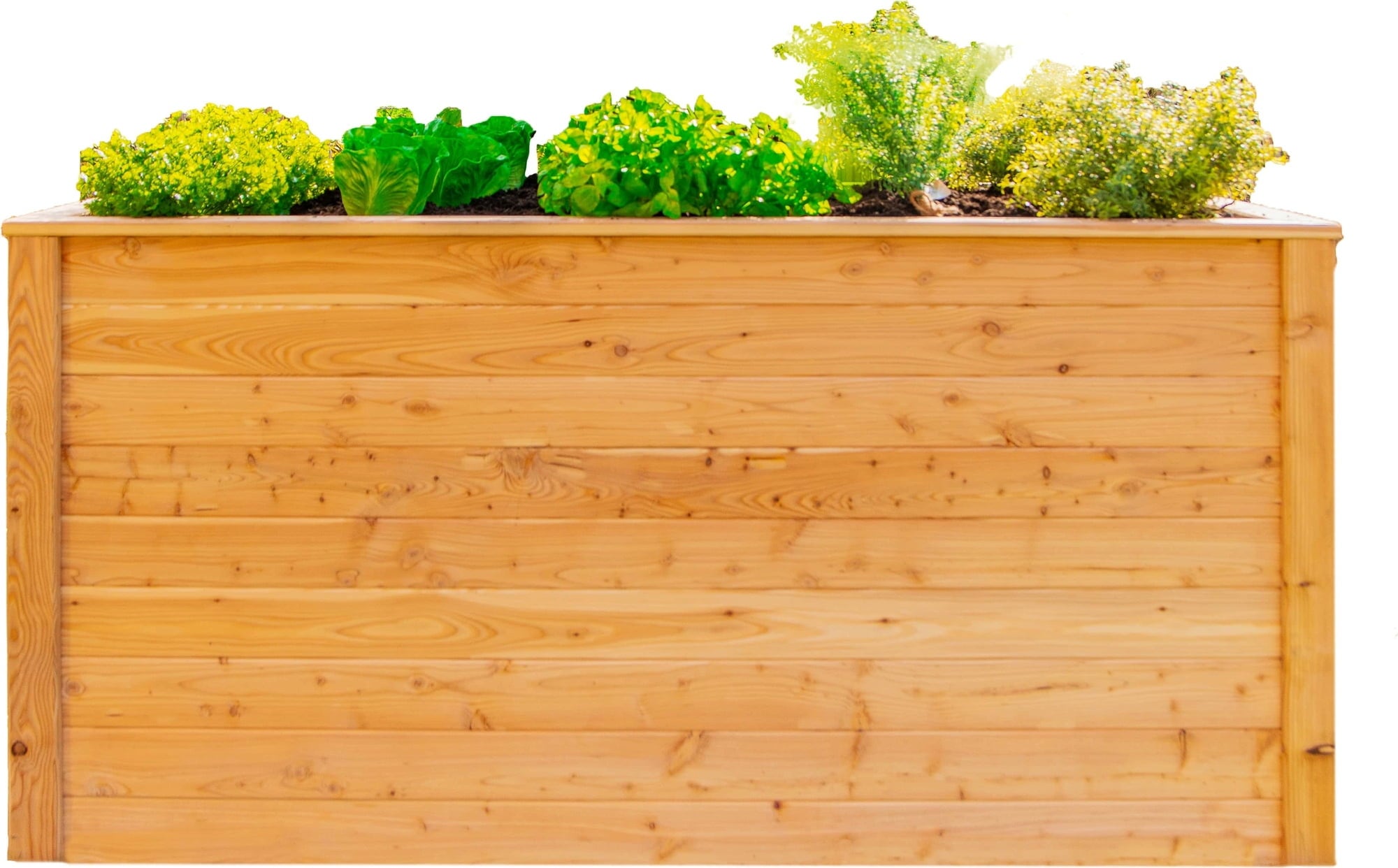 Visoka greda iz naravnega macesnovega lesa je prav posebna paša za oči na vrtu, terasi ali balkonu. Les iz lokalnih gozdov je pridobljen trajnostno in se odlikuje predvsem s svojimi robustnimi in vzdržljivimi lastnostmi. Rastline na dvignjenih gredah rastejo še posebej dobro, saj imajo koristi od toplote, ki nastane v notranjosti. Manj je tudi rasti plevela, polži in živali pa težje pridejo do sočne zelenjave. Posebej prijetna je tudi ergonomska višina, ki omogoča, da sta delo in žetev nežna do hrbta. Visoka greda iz macesna ne navduši le s praktičnostjo, temveč tudi z vizualno privlačnostjo in se harmonično zlije z okolico.