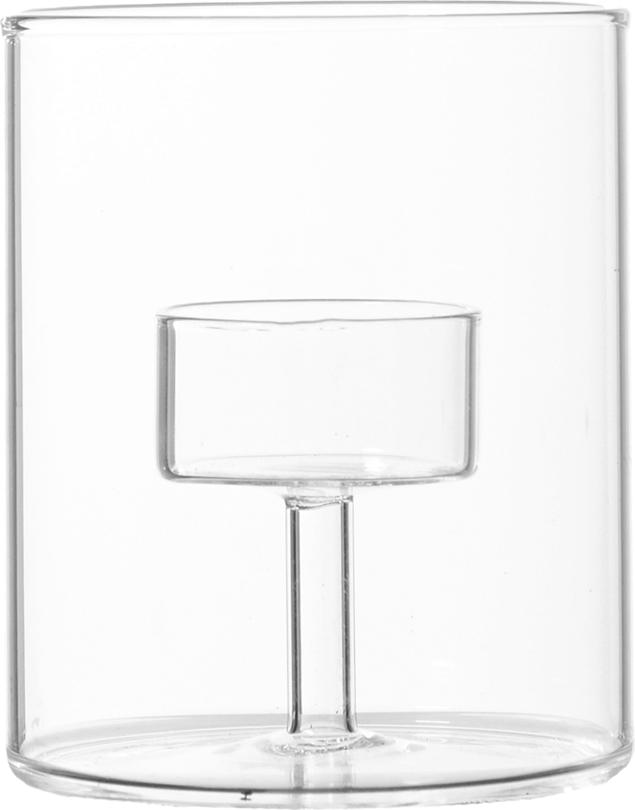 Ta elegantni svečnik za čajne svečke iz prozornega stekla združuje sodoben dizajn z romantično svetlobo sveč in je popoln dodatek za minimalistično opremljeno notranjost.