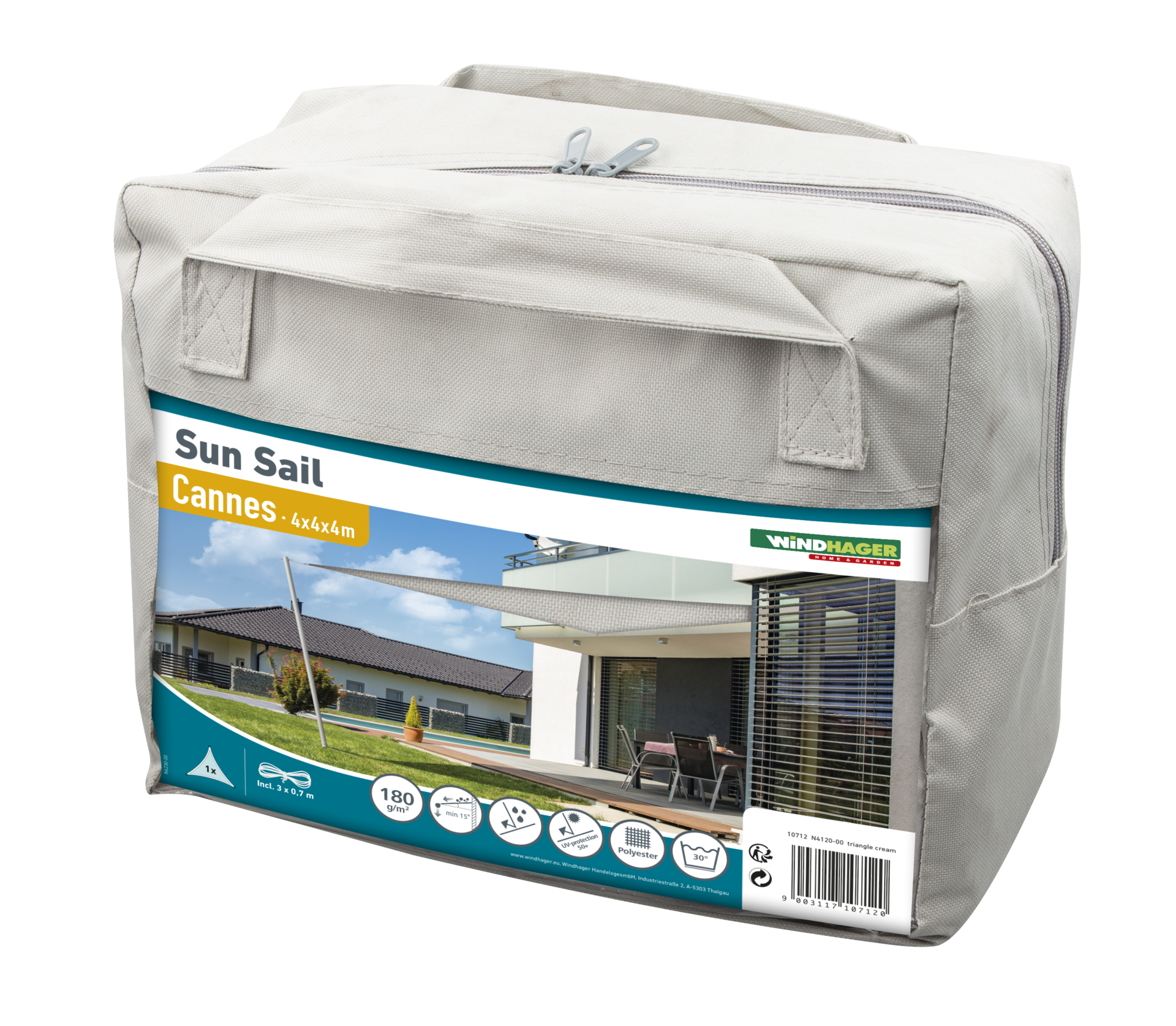 Windhager Jadro SunSail CANNES trikotnik 4x4x4m, krem siva