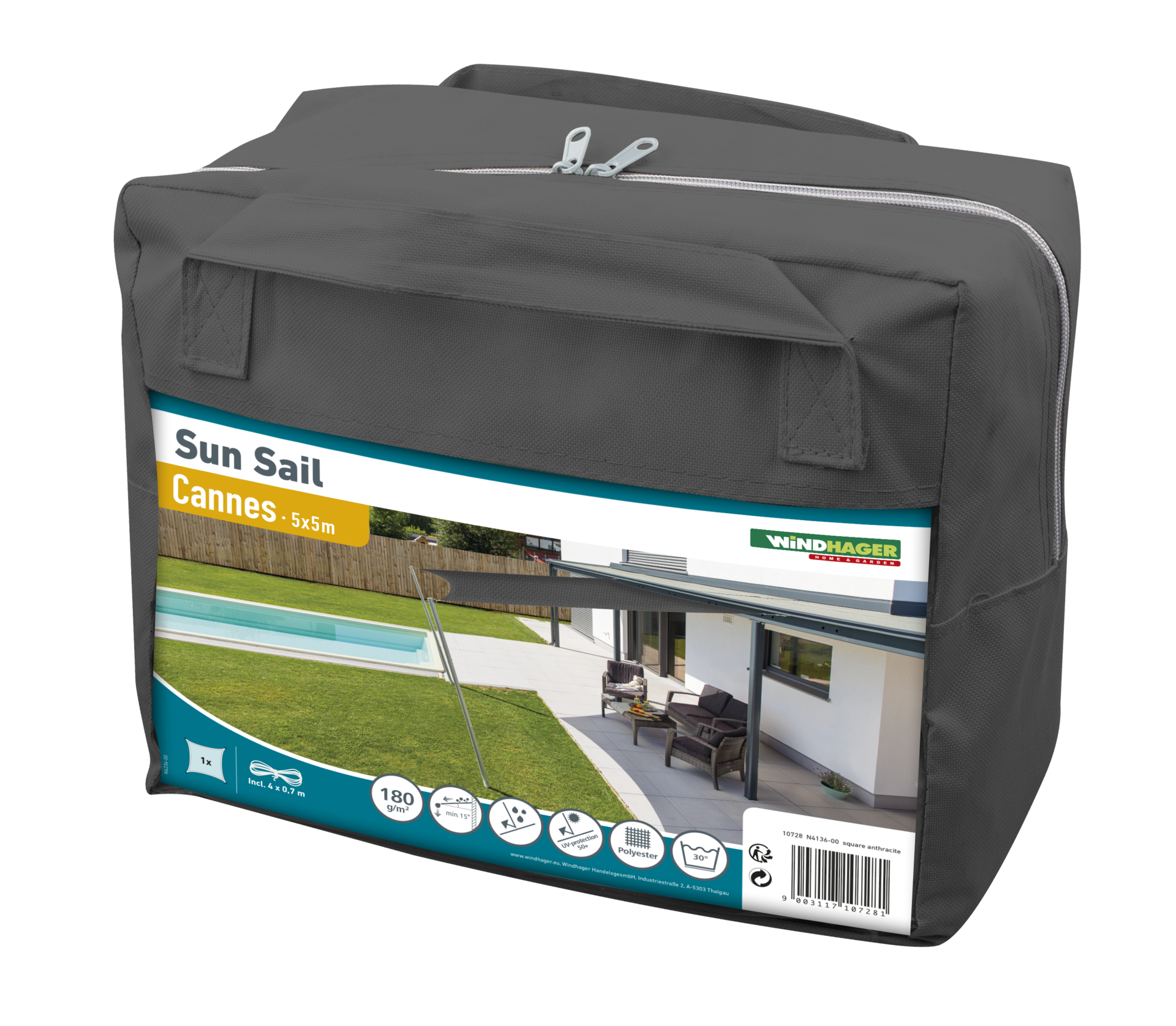 Izkušnenj v jeziku slovenščina za izdelek Windhager Jadro za sonce CANNES kvadrat 5x5 m
