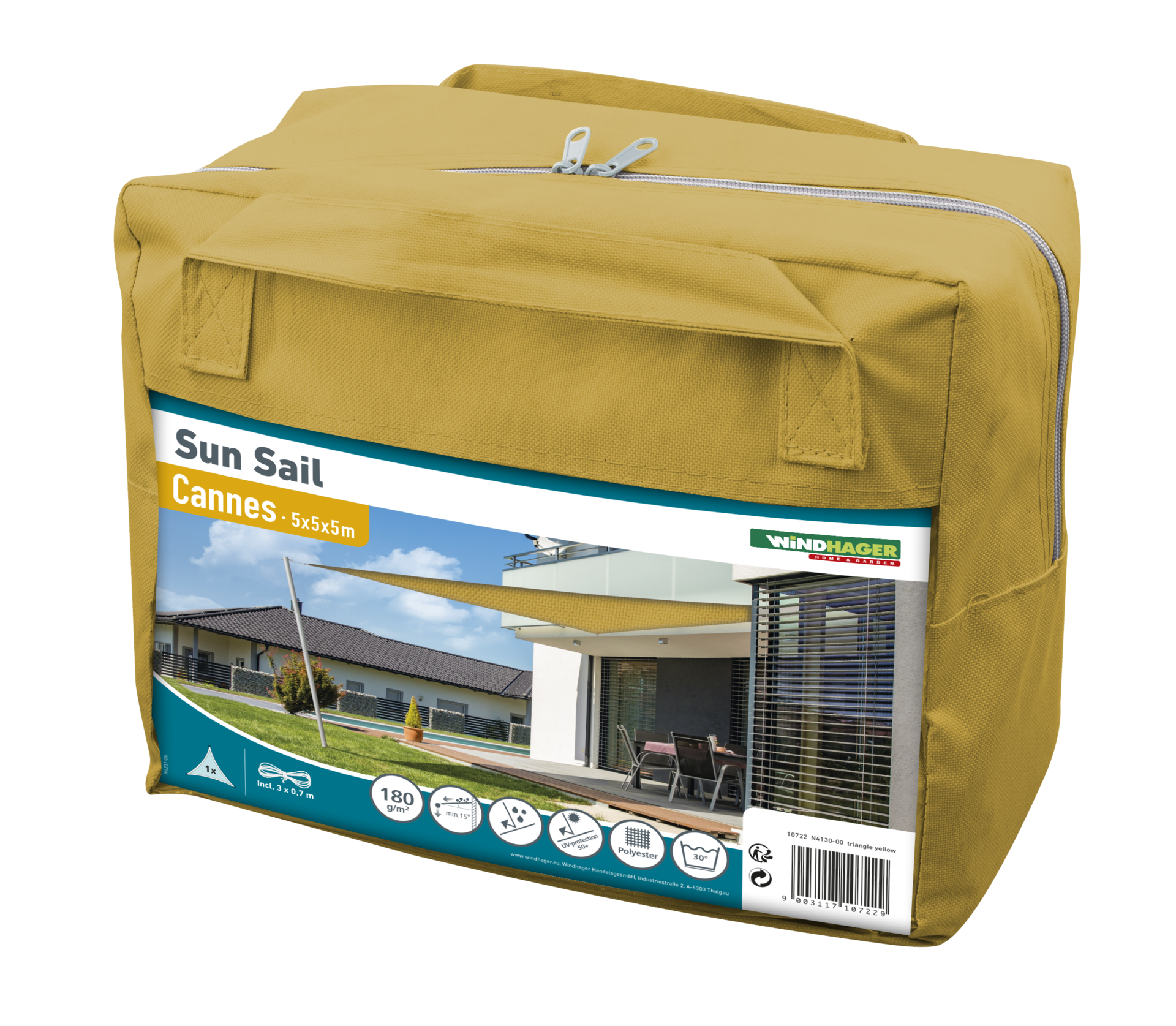Windhager Trikotno jadro SunSail CANNES 5x5x5m, rumena