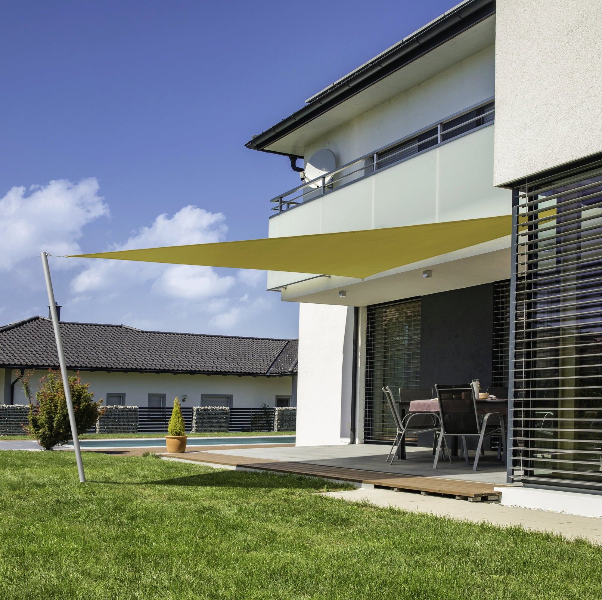 Popoln ponudnik za senco poleti. Trikotno sončno jadro SunSail CANNES je hitro in enostavno pritrditi in jo lahko kadar koli znova odstranite, če se odločite za drugo barvo ali jo želite pospraviti, da pozimi prihranite prostor.
